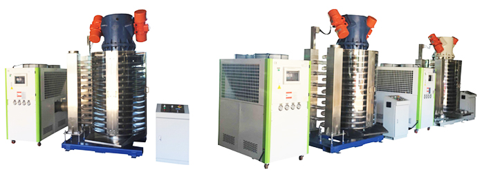 振動式冷卻輸送機是專為解決膠坯粘連、變形、冷卻而設(shè)計的預(yù)成型機配套輔機,該機占地面積小,與膠料接觸部位均采用不銹鋼材料,防止膠料污染。膠坯通過振動方式行進,有效防止膠料粘連、變形。標(biāo)準(zhǔn)冷卻距離長為35米,最長達50米??赏ㄟ^風(fēng)冷或噴淋強化冷卻效果,重量小的坯料可采用封閉式風(fēng)冷,重量較大或熱量較大的坯料,還可以通過外接水箱進行循環(huán)水噴淋冷卻,對FKM、NBR、CR、EPDM、造粒、軸承密封件、油封、O型圈等坯料的冷卻效果尤為突出.
